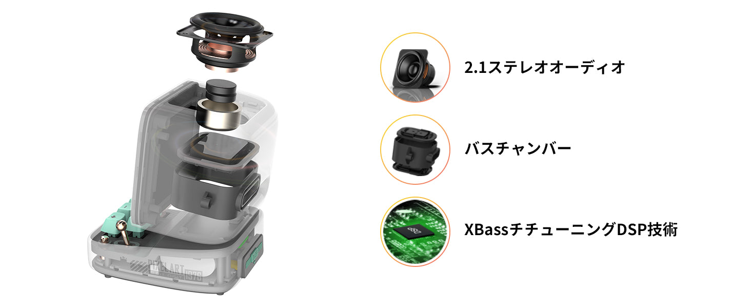 DITOO-PROパッケージには、DITOO-PROスピーカー*1、TYPE-C電源ケーブル*1、箱*1、紙袋*1、ステッカー*1、多言語マニュアル*1が付属しています。