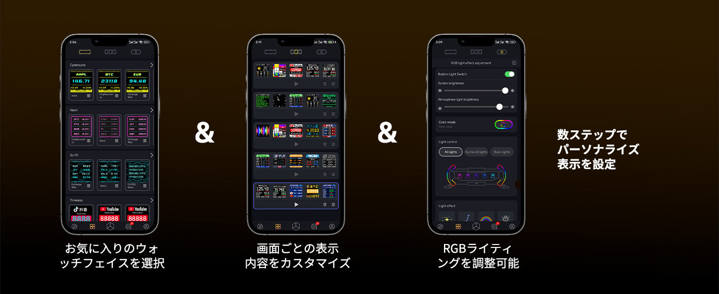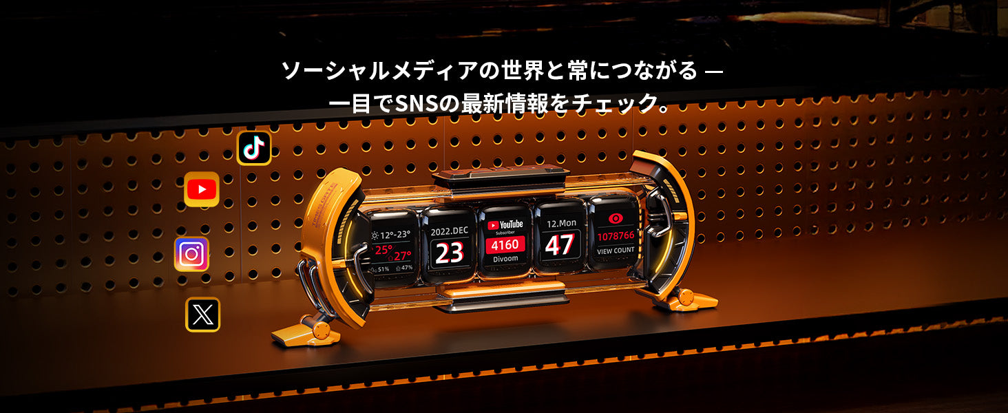 スマートアプリ制御: 専用アプリで表示画面やデータダイヤルを自由にカスタマイズ。世界時計、天気、カレンダーに加え、株式やSNSフォロワーなど、実用的な情報を一括管理・表示する「賢いライフアシスタント」です。