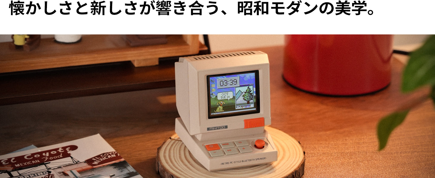 : 手のひらサイズのレトロピクセルスピーカー。デスクトップセットアップやベッドサイドテーブル、ギフトにも最適です。